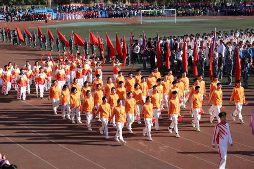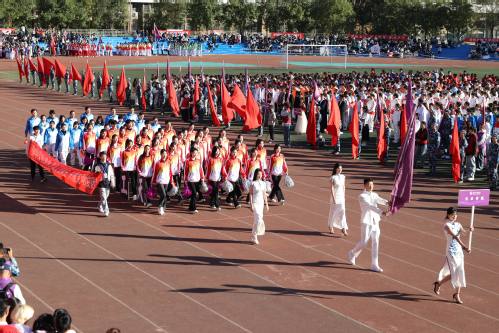 伴随着《运动员进行曲》的激昂旋律,33个方队喊着响亮的口号,迈着坚定的步伐依次进入运动场、走过主席台,充分展现了我校师生良好的精神风貌。