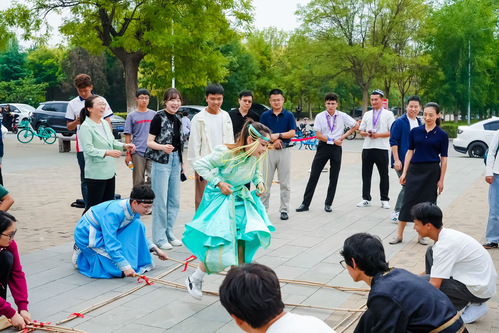 射箭、摔跤、投壶、赛陀螺、滚铁环……民族运动会赛区,来自23个学院的运动员们展示着别开生面的传统文化体验与竞技活动。弦无虚发的射箭、舞动如飞的跳竹竿、百发百中的投壶,每个项目都让参赛选手和前来体验的师生们感受到传统体育与少数民族文化的巧妙融合,充分展现了我国少数民族文化的特质与魅力。