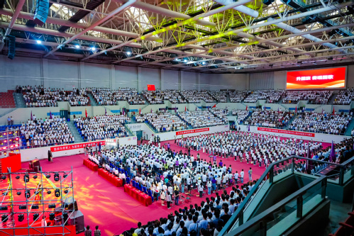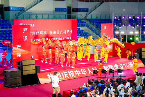2024年9月29日下午,当两条“飞龙”上下舞动奔向舞台时,瞬间引爆了学校体育馆文艺演出的现场。伴随着师生们的深情演唱,互博电子体育庆祝中华人民共和国成立75周年文艺演出正式拉开帷幕。在这里,灯光熠熠的舞台成为思政课的讲台,一个个激昂慷慨的唱词、一段段娓娓动情地讲述、一幕幕感人至深的舞蹈,寓情于景、寓景于情,成为了学校大思政课的“活教材”,持续“燃炸”全场。