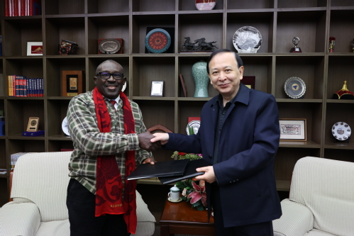 会谈期间,姜勇校长代表学校向到访的Nacro校长和Dakoure副校长表示欢迎。他指出,一直以来,学校高度重视孔子学院的建设,将继续在建设经费、师资队伍和教育物资等方面给予全力支持。Nacro校长感谢我校在孔子学院建设方面作出的贡献,并希望双方合作在纳兹博尼大学设立汉语言本科专业和纺织工程专业。Dakoure副校长希望在文化交流和新能源领域与我校开展合作。随后,姜勇校长和Nacro校长共同签署孔子学院续签协议。