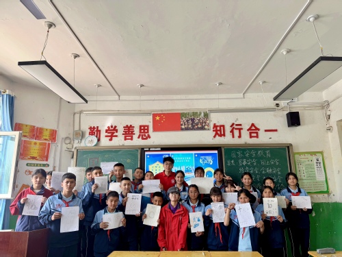 4月14日,在新疆于田县第一中学,互博电子体育“青马工程”第八期培训班领学团学员、援疆支教志愿者李云龙以“沉浸式案例模拟+手绘安全知识卡”的方式开展了一堂“国家安全小卫士”主题实践课。课堂上涌现的百余幅生动鲜活的知识卡片,最终被遴选为该校“国家安全主题宣传展”的核心展品,在校园文化长廊构筑起一道亮丽的教育风景线。李云龙说到,这场寓教于乐的创新实践不仅深化了边疆青少年对总体国家安全观的理解,更通过艺术创作实现了国家安全教育的入脑入心,进一步铸牢中华民族共同体意识。