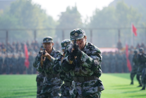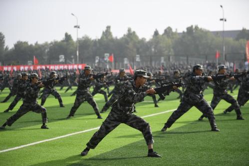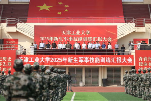 汇报大会在庄严的升国旗仪式中拉开序幕。20个分列式方队以整齐划一的步伐、高亢嘹亮的口号依次通过主席台,充分展现了天工学子朝气蓬勃、奋发向上的精神风貌。在军事技能汇报展示中,女子匕首术刚柔并济,一招一式诠释巾帼不让须眉的飒爽英姿;战术方阵持枪匍匐、翻越障碍,班组协同战术演示将汇报大会推向高潮,赢得现场师生热烈掌声;男子刺杀操方阵由500名2025级新生组成,动作刚猛有力气势如虹,突刺格挡间彰显敢打必胜的坚定信念。