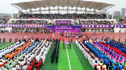 开幕式在激昂的《运动员进行曲》中拉开帷幕。36个方队迈着矫健的步伐依次从主席台前走过,队员们身着统一服装,手持特色标语,步伐整齐、精神抖擞,观众席上爆发出阵阵欢呼声。